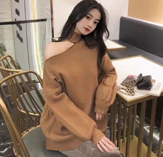 ニットセーター レディース トップス プルオーバー ニット セーター 長袖 ワンショルダー 肩出し ホルターネック 無地 ゆったり ルーズシルエット カジュアル お出かけ おしゃれ きれいめ 女性