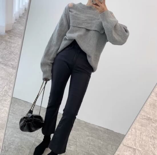 ニットセーター レディース トップス プルオーバー ニット セーター 肩出し 個性的 長袖 ゆったり ルーズ カジュアル お出かけ おしゃれ セクシー きれいめ ランドネック 女性 ファッション 秋冬
