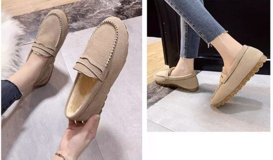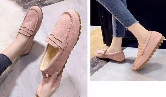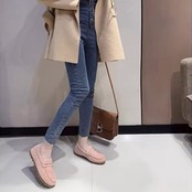 ローファー レディース ラウンドトゥ ファー スエード フラットシューズ ローヒール 1.5cmヒール 内起毛 シンプル レトロ 4color かわいい ガーリー カジュアル オフィス おしゃれ