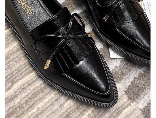 ローファー レディース ポインテッドトゥ リボン タッセル スリッポン ローヒール 3.5cmヒール マニッシュ メンズライク レトロ クラシカル きれいめ カジュアル フェイクレザー おしゃれ