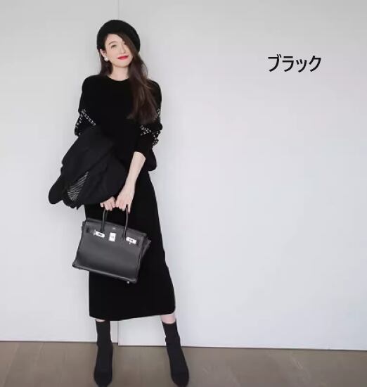 ニットセットアップ レディース 2点セット 上下セット ツーピース トップス セーター 長袖 プルオーバー ラウンドネック ボトムス スカート ミドル丈 カジュアル お出かけ おしゃれ きれいめ 女性