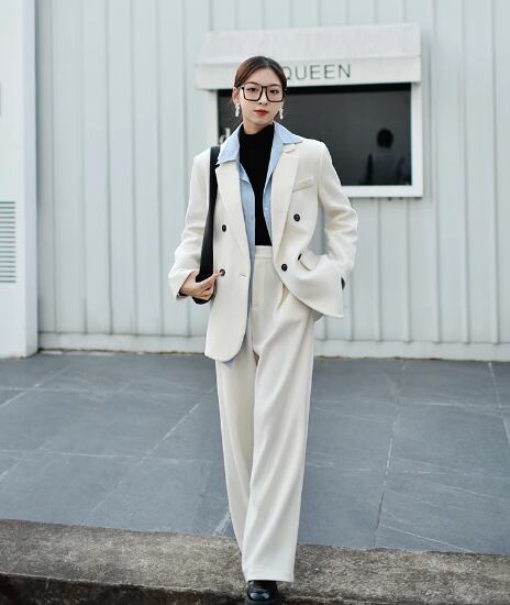 おしゃれなコーデュロイ素材のパンツスーツ。