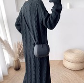 ケーブル編みがかわいいロングニットワンピース。