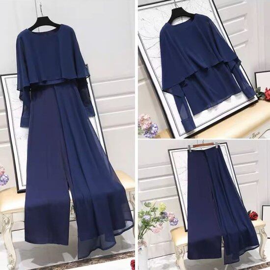 セットアップ レディース パンツドレス 上下セット シフォン ブラウス プルオーバー ケープ ボリューム袖 ワイドパンツ エレガント パンツスーツ 結婚式 披露宴 謝恩会 パーティードレス おしゃれ