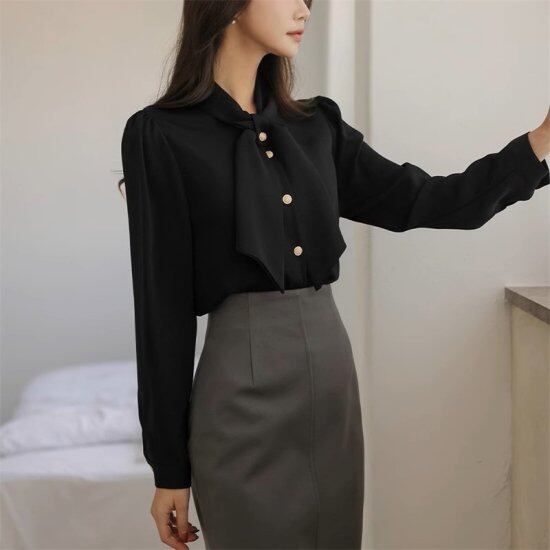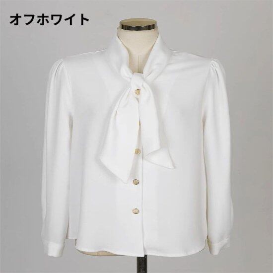 ボウタイブラウス レディース リボン 長袖 シャツ ボタン スカーフ シンプル クロスリボン シフォン レディライク きれいめ レトロ クラシカル エレガント 上品 オフィス おでかけ おしゃれ