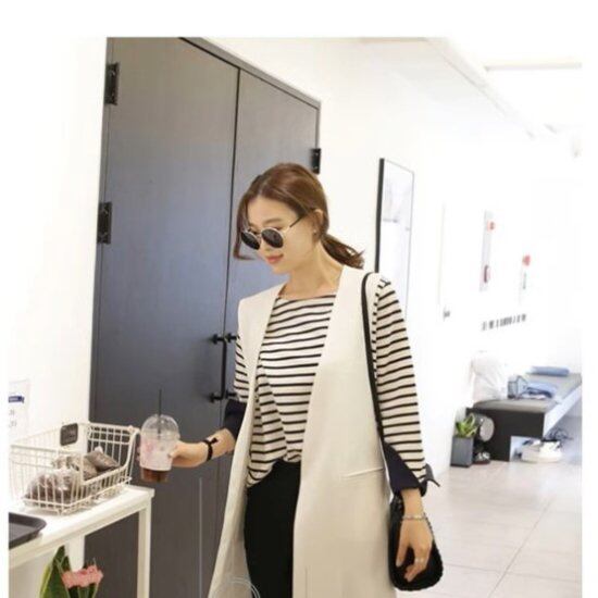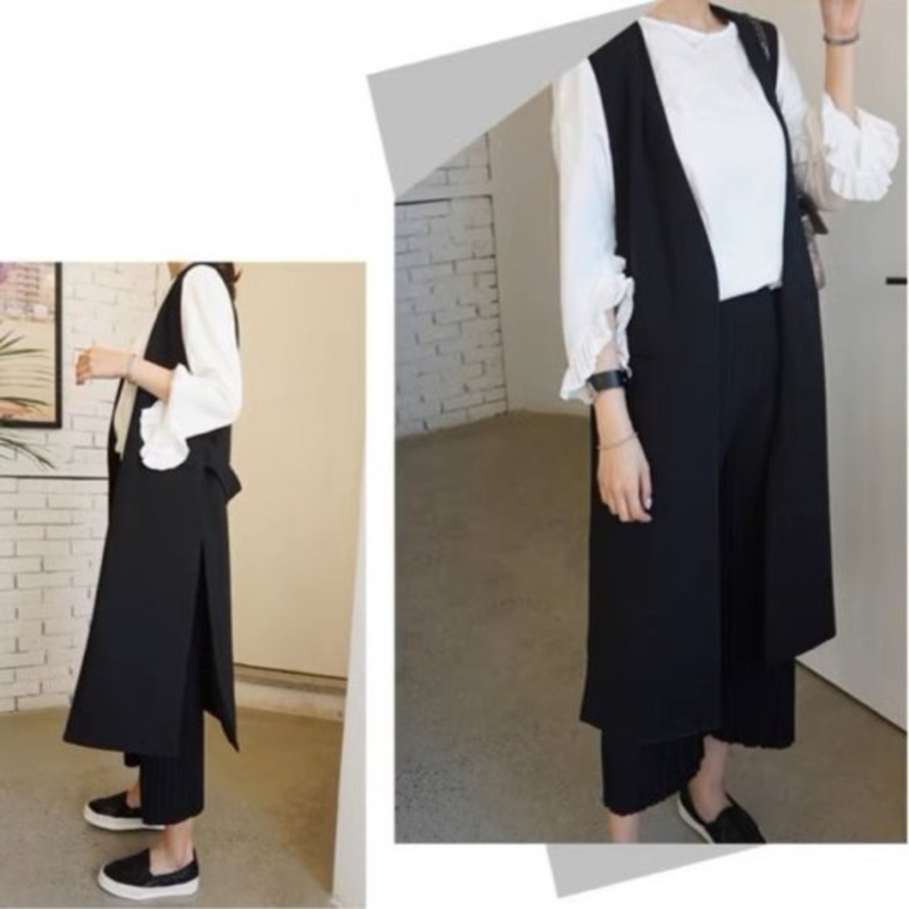 羽織るだけでこなれ感を演出するモノトーンのロングジレ。