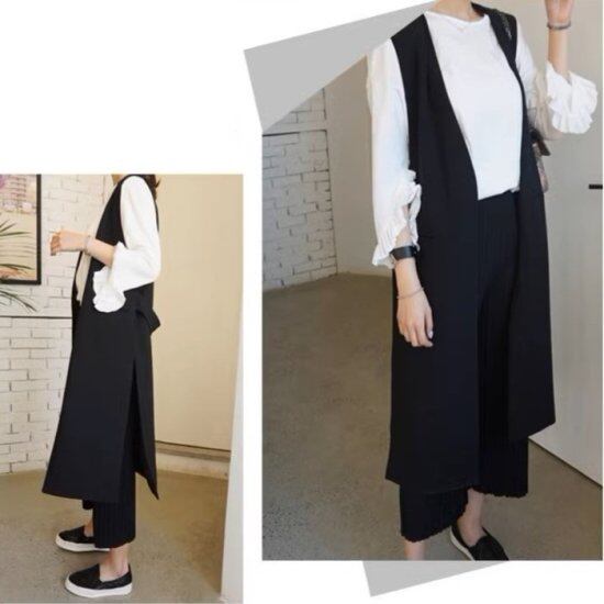 ロングジレ レディース ロングベスト Vネック ノーカラー スリット ロング丈 ノースリーブ ベスト ジレ 羽織り アウター きれいめ エレガント カジュアル 2color オフィス おしゃれ
