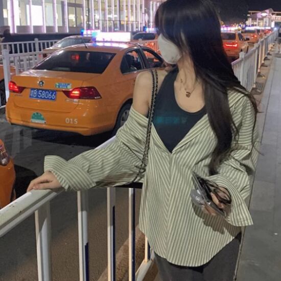 長袖シャツ レディース トップス 襟あり ポロ襟 フロントボタン シンプル 無地 ストライプ 爽やか ゆったり 羽織 ルーズ カジュアル お出かけ おしゃれ 春夏 ベーシック 定番 オーバーサイズ