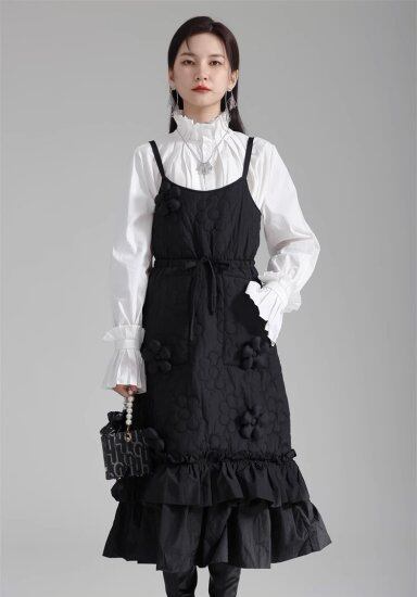 ワンピース レディース キャミソールワンピース フリル 花柄 フラワーモチーフ立体的 キルティング サスペンダー キャミワンピ 個性的 ユニーク Aライン リボン かわいい ガーリー おしゃれ