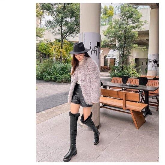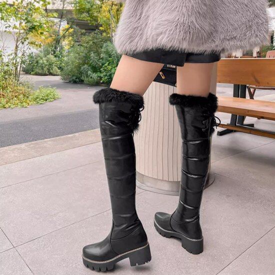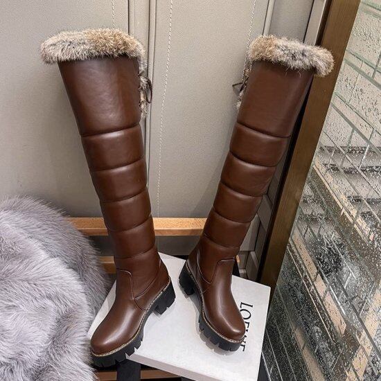 ロングブーツ レディース ニーハイブーツ ファー ダウン ラウンドトゥ フェイクファー キルティング 厚底 ハイヒール 5.5cmヒール 2color 脚長 美脚 きれいめ カジュアル おしゃれ