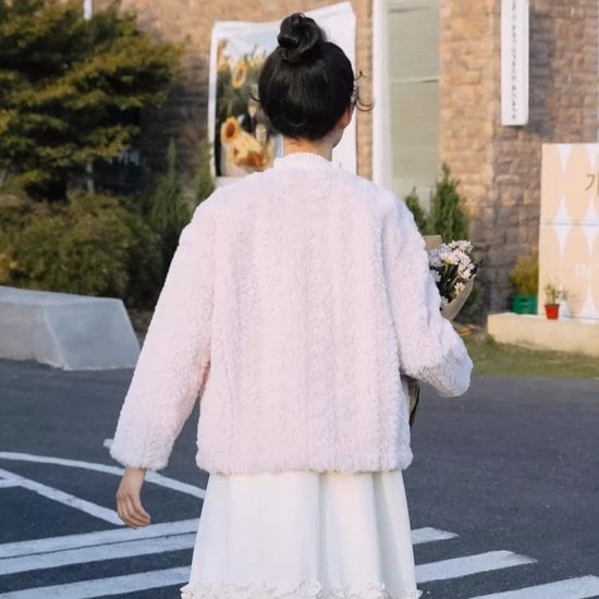 ふわふわシルエットがかわいいフェイクファージャケット。