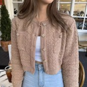 ショートジャケット レディース カーディガン 長袖 ラウンドネック クルーネック ボタン シングルブレスト ショート丈 クロップド丈 4color きれいめ エレガント カジュアル おしゃれ