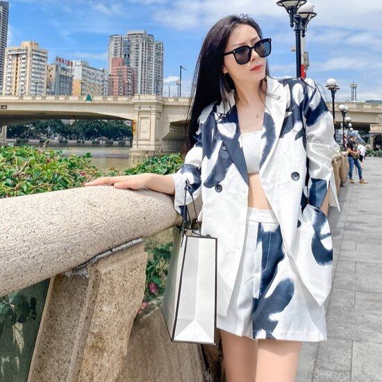 水墨画のようなプリントがおしゃれなショートパンツのセットアップ。