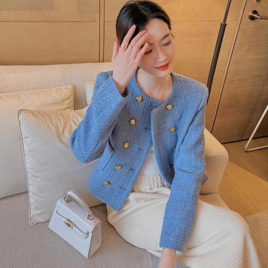 ツイードジャケット レディース ノーカラージャケット 長袖 ラウンドネック ダブルブレスト ショート丈 ボタン ミリタリー レトロ クラシカル エレガント 上品 入学式 卒業式 セレモニー おしゃれ