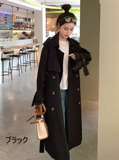 ロングコート レディース アウター 羽織 トレンチコート 長袖 ダブルブレスト ウエストベルト ゆったり ルーズ 襟あり 袖口ベルト きれいめ エレガント スタイリッシュ カジュアル お出かけ 上着