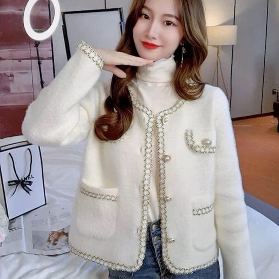 ノーカラージャケット レディース パイピング 長袖 ジャケット パールボタン ショートジャケット もこもこ ふわふわ きれいめ エレガント 上品 カジュアル フェミニン オフィス おでかけ おしゃれ