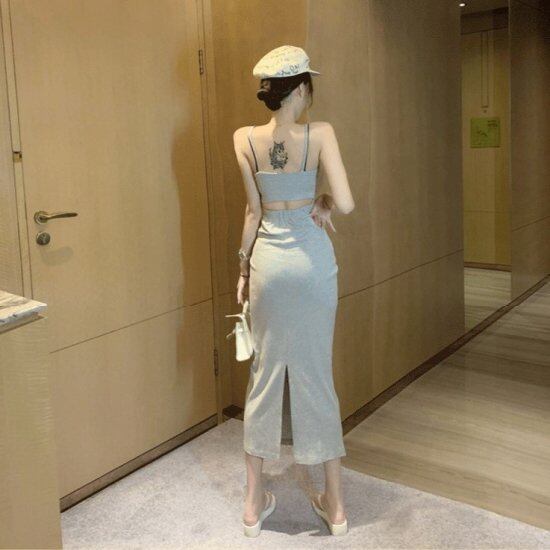 キャミソールワンピース レディース ロングワンピース 背中あき ノースリーブ コットン バックスリット 肌見せ キャミワンピ 薄手 セクシー カジュアル リゾート 旅行 ルームウエア おしゃれ