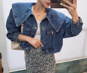 大きな襟がエレガントなデニムジャケット。