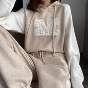 セットアップ レディース ニット ニットパーカー 長袖 フード プルオーバー ニットパンツ 裾絞り 上下セット ニットアップ カジュアル スポーティー バイカラー 2点セット ストリート おしゃれ