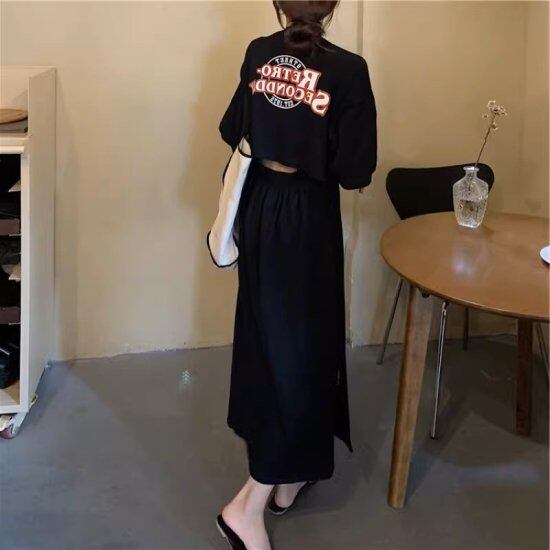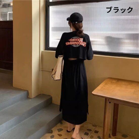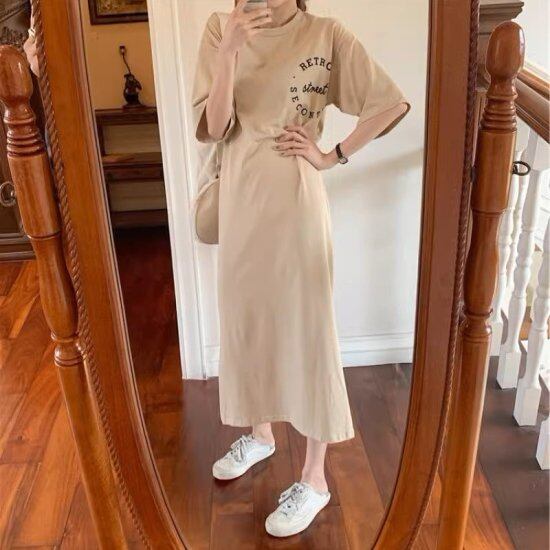 Tシャツワンピース レディース ロングワンピース バックオープン ロゴ 半袖 ラウンドネック 背中あき Aライン ロング丈 ミモレ丈 カジュアル ガーリー スポーティー ワンピース おしゃれ