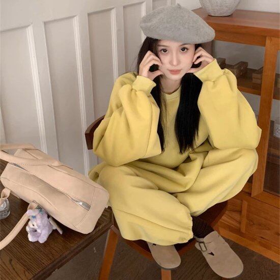 セットアップ レディース スウェット 上下セット トレーナー ラウンドネック パフスリーブ ボリューム袖 オーバーサイズ スウェットパンツ ゆったり ルーズ ジャージ かわいい カジュアル おしゃれ