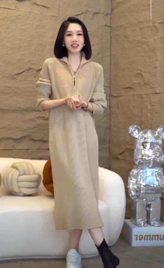 ハーフジップで2wayの襟元を楽しめるニットワンピース。