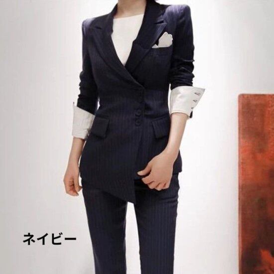 セットアップ レディース パンツスーツ テーラードジャケット ストレート クロップドパンツ スリム チェック ストライプ 2color エレガント オフィス 入学式 卒業式 入園式 卒園式 おしゃれ