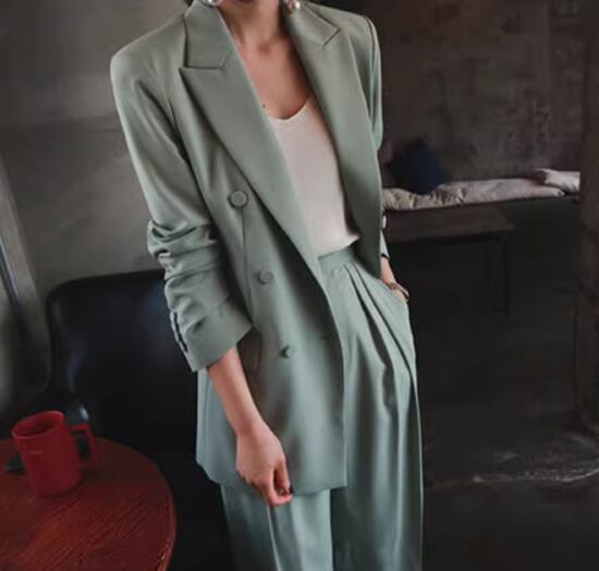 パンツスーツ レディース ツーピース 2点セット セットアップ ジャケット 羽織 ダブルブレスト テーラードジャケット 長袖 ボトムス 長ズボン きれいめ スタイリッシュ オフィス 通勤 フォーマル
