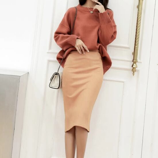 膝丈スカート レディース ボトムス スカート ペンシルスカート シンプル 無地 スリムフィット スリット きれいめ エレガント オフィス フォーマル カジュアル お出かけ おしゃれ ファッション 女性