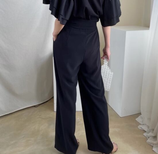 ワイドパンツ レディース ボトムス ロングパンツ ワイドレッグ 長ズボン ウエストリボン ドレープ シンプル 無地 カジュアル お出かけ おしゃれ きれいめ 個性的 ハイウエスト ファッション 女性