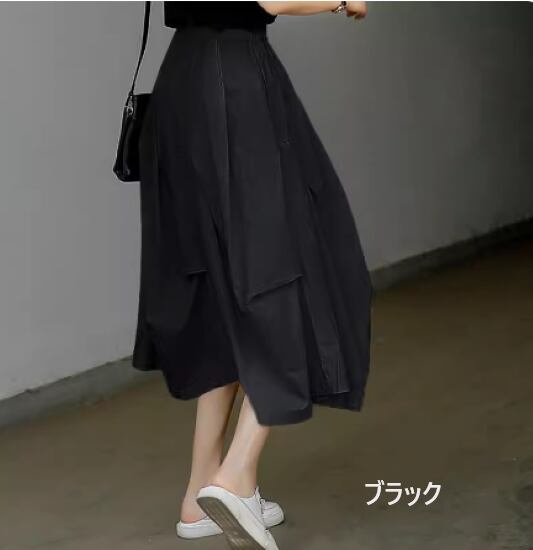ミドル丈スカート レディース ボトムス スカート ハイウエスト 個性的 春夏 無地 カジュアル お出かけ おしゃれ きれいめ Aラインスカート 女性 ファッション ポケット ウエストゴム ナチュラル