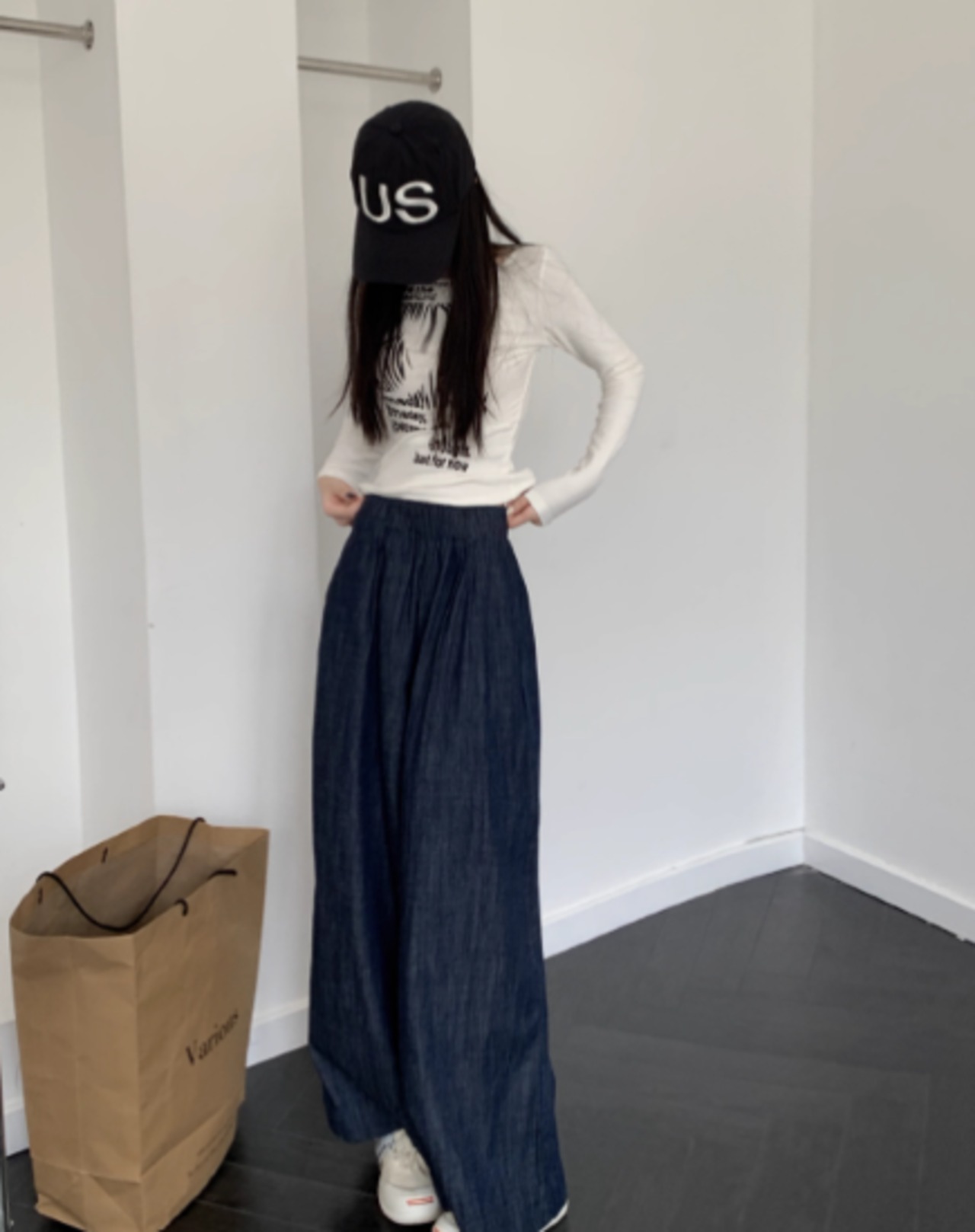 ワイドパンツ レディース ボトムス ロングパンツ 長ズボン ワイドレッグ ゆったり ウエストゴム ハイウエスト デニム調 ポケット カジュアル お出かけ おしゃれ シンプル 無地 女性 ファッション