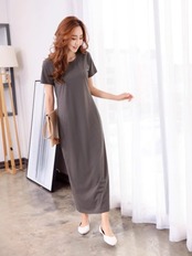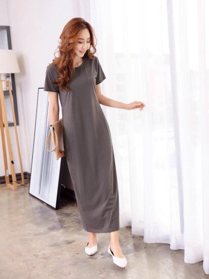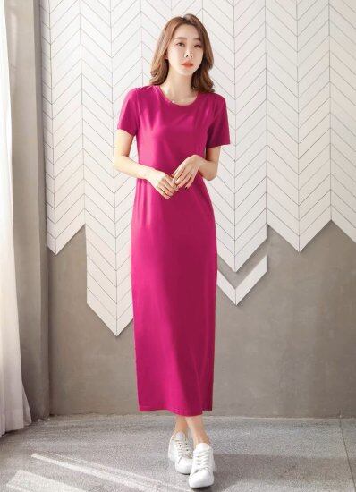Tシャツワンピース レディース ロングワンピース 半袖 ラウンドネック クルーネック ロング丈 マキシ丈 シンプル 無地 コットン Tシャツ きれいめ カジュアル 部屋着 リゾート おしゃれ