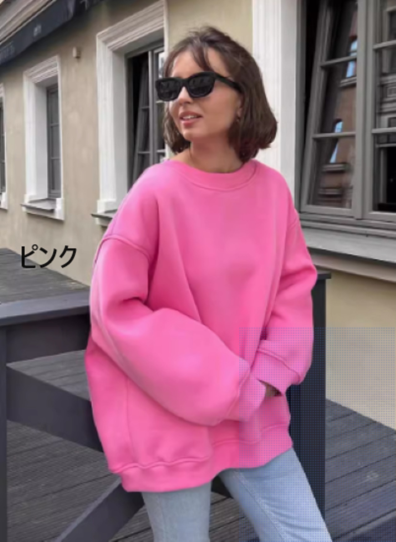 スウェットシャツ レディース トップス カットソー トレーナー 長袖 ラウンドネック ゆったり ルーズ シンプル 無地 プルオーバー カジュアル お出かけ おしゃれ オーバーサイズ 体型カバー 女性