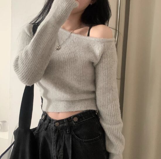 オフショルダーの肩出しがセクシーなニット。
