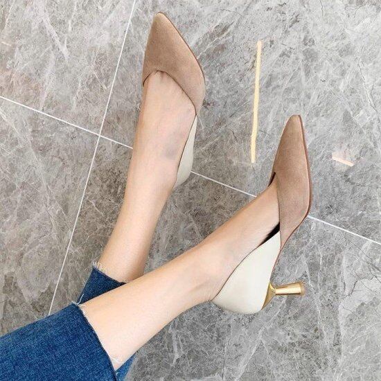 パンプス レディース バイカラー ポインテッドトゥ デザインヒール ツートーン ハイヒール 6cmヒール フェイクレザー エコレザー ヌーディ きれいめ 上品 美脚 脚長 オフィス おしゃれ