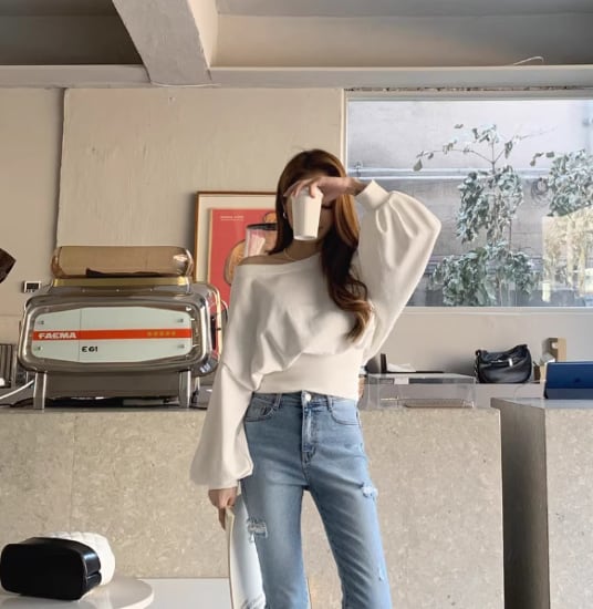 ふんわりボリューム袖でゆったりしたシルエットのスウェット。