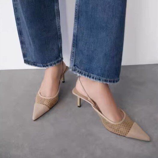 メッシュサンダル レディース パンプス ミュール バックストラップ ポインテッドトゥ 切り替え フェイクレザー ハイヒール 6.5cmヒール きれいめ エレガント メッシュ サンダル おしゃれ
