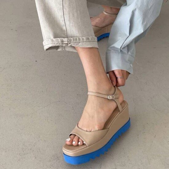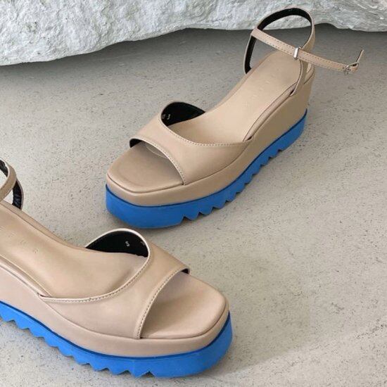 ウェッジソールサンダル レディース 厚底 バイカラー オープントゥ アンクルストラップ フェイクレザー エコレザー ツートーン レトロ かわいい カジュアル 2color 個性的 脚長 おしゃれ