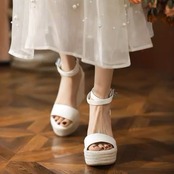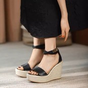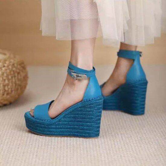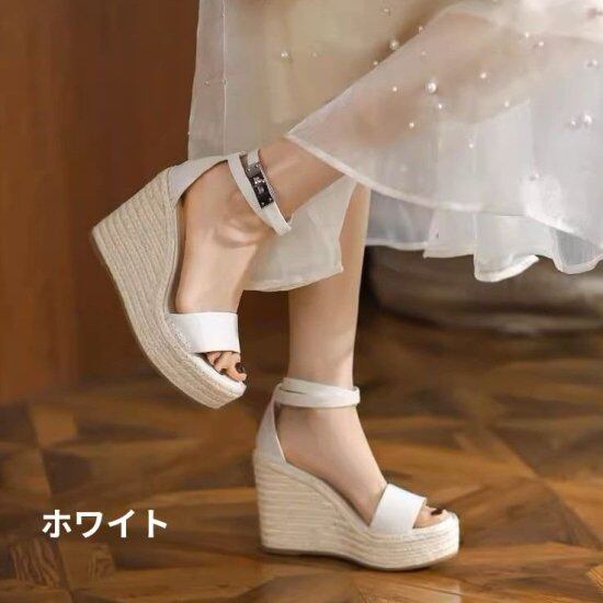 ウェッジソールサンダル レディース 厚底 サンダル オープントゥ アンクルストラップ ハイヒール 12cmヒール レトロ クラシカル きれいめ かわいい エレガント ガーリー 6color おしゃれ