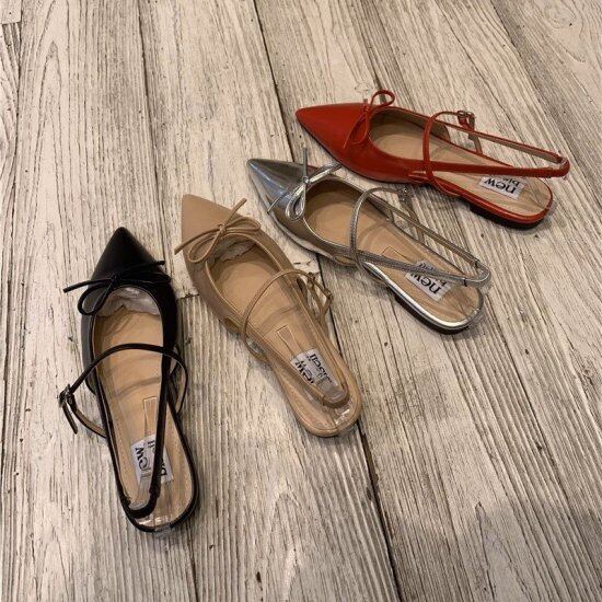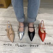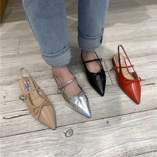 バックストラップパンプス レディース リボン ポインテッドトゥ ローヒール 1cmヒール フェイクレザー エコレザー ぺたんこ フラット 4color かわいい ガーリー カジュアル 脚長 おしゃれ