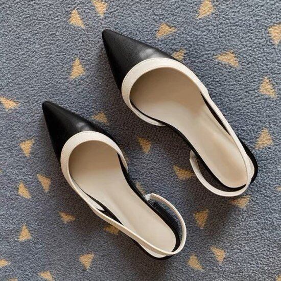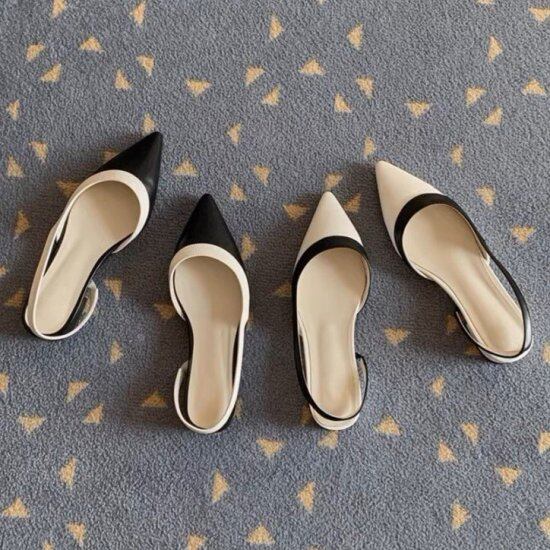 バックストラップパンプス レディース バイカラー ポインテッドトゥ フェイクレザー エコレザー ローヒール 2cmヒール ツートーン レトロ クラシカル 2color オフィス エレガント おしゃれ