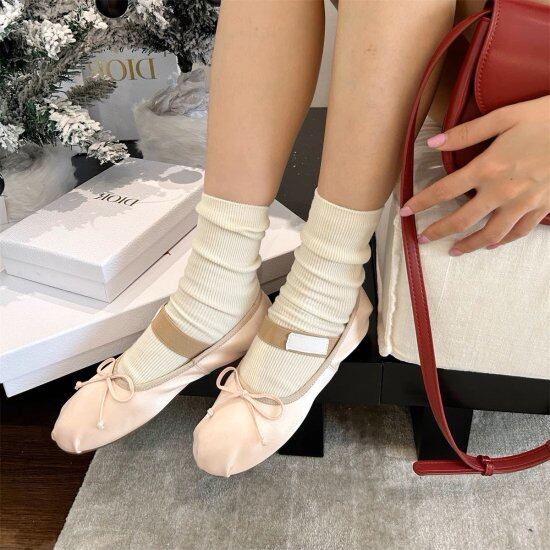 本物のバレエシューズのようなスタイルのフラットシューズ。