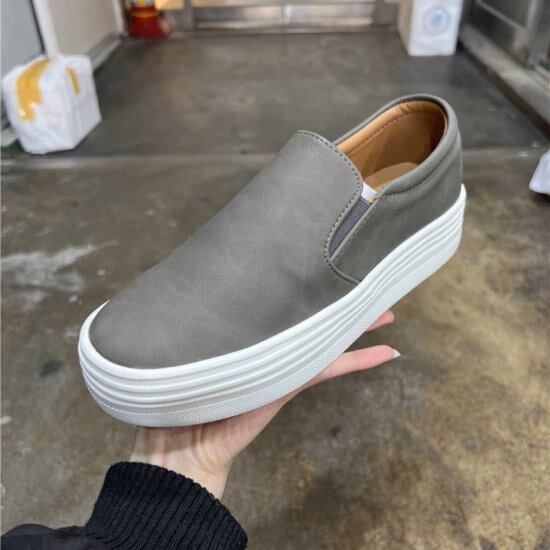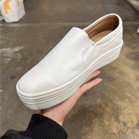 スリッポン レディース スニーカー ラウンドトゥ 厚底 ローヒール 4cmヒール プラットフォーム シンプル フェイクレザー エコレザー レトロ ユニセックス スタイリッシュ カジュアル おしゃれ