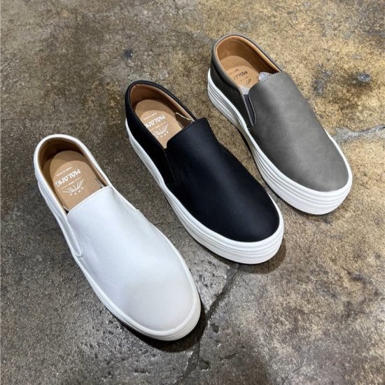 大人カジュアルコーデにぴったりなフェイクレザースリッポン。