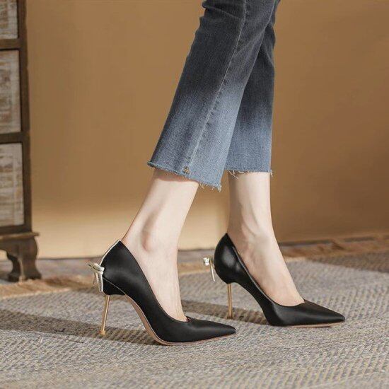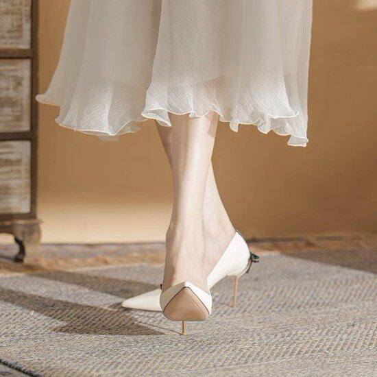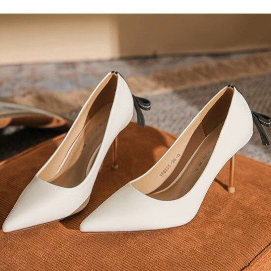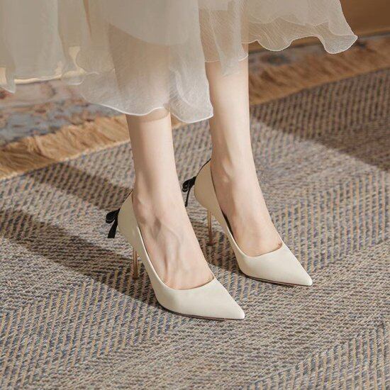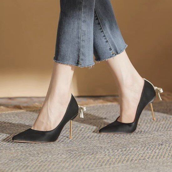 バックリボンが大人かわいいハイヒールパンプス。