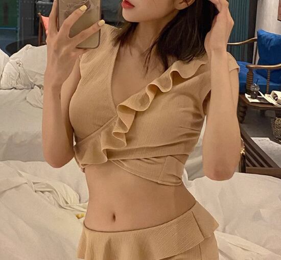 ビキニ レディース 水着 スイムウェア ビーチウェア セパレート Vネック フリル フェミニン 可愛い 上下セット ツーピース ビーチ プール 海水浴 リゾート カジュアル セクシー バックリボン