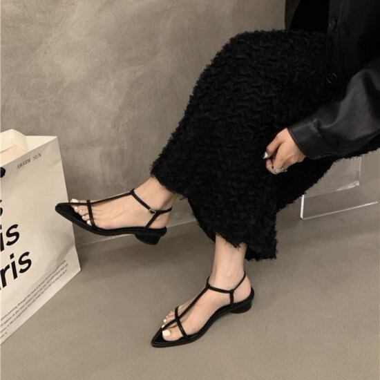 細いストラップが華奢な足元を演出するストラップサンダル。