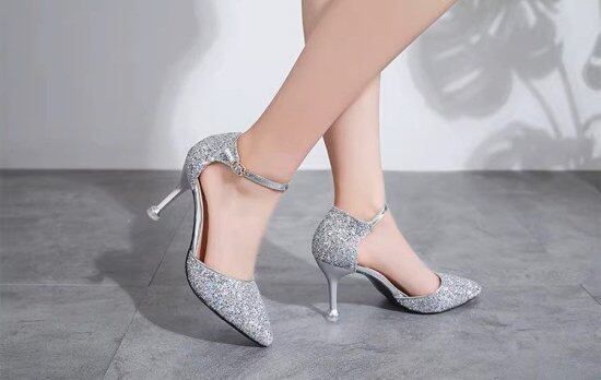 ストラップパンプス レディース スパンコール ポインテッドトゥ アンクルストラップ ハイヒール 選べるヒール高 6cmヒール 8cmヒール 華やか エレガント 美脚 脚長 パーティー おしゃれ