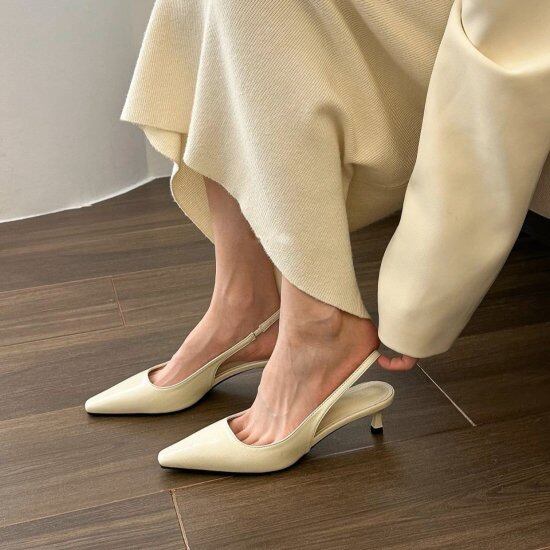 バックストラップパンプス レディース ポインテッドトゥ サンダル フェイクレザー エコレザー ミドルヒール 4cmヒール レトロ クラシカル 3color エレガント オフィス おでかけ おしゃれ